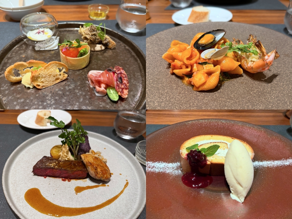 そして夕食は、イタリアンのフルコースでした。今まで泊まったホテルでイタリアンは初めてで、オリーブオイルの香りとフランス料理にはない美味でした😋