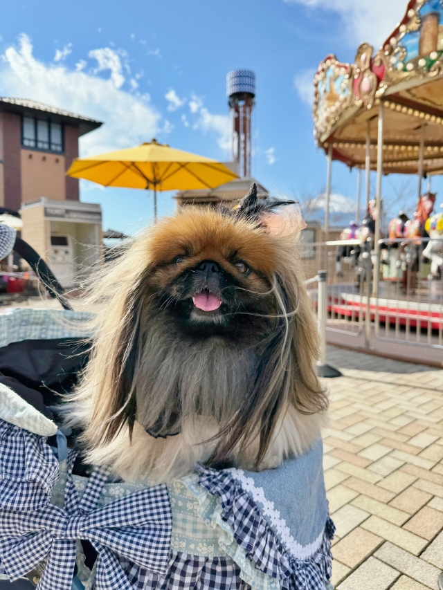私たちがテラス席について5分ほどしたら、トイプー2匹を連れたご夫婦がテラス席に見えました。