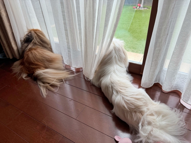 そしてガウガウした後は・・・仲良くお庭を眺めています😋