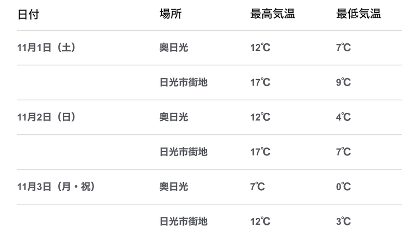 気温も調べると・・・日光市内は比較的暖かですが、奥日光・市街地の気温は