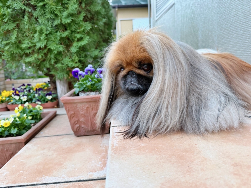乃音も一人だと庭に出てもまったりです😋