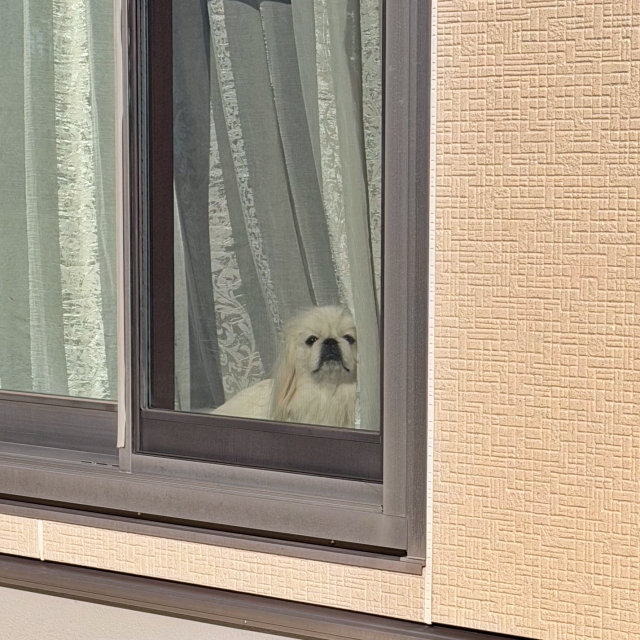 乃音の2回目の散歩に行く時は、いつもあんちゃんが窓から眺めているので「ごめんね!」と言いながら散歩に出るんですね😥