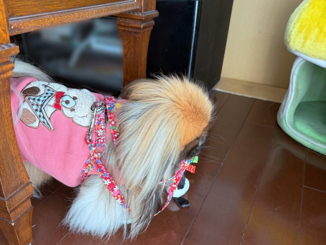 今日は2回目の散歩に出る時乃音に服を着せてリードをつけたら・・・リードを咥えて逃げてった🤣