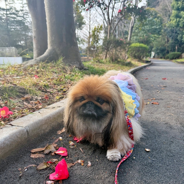 今日は朝から暖かくて、乃音は夏用の接触冷感服で散歩に。