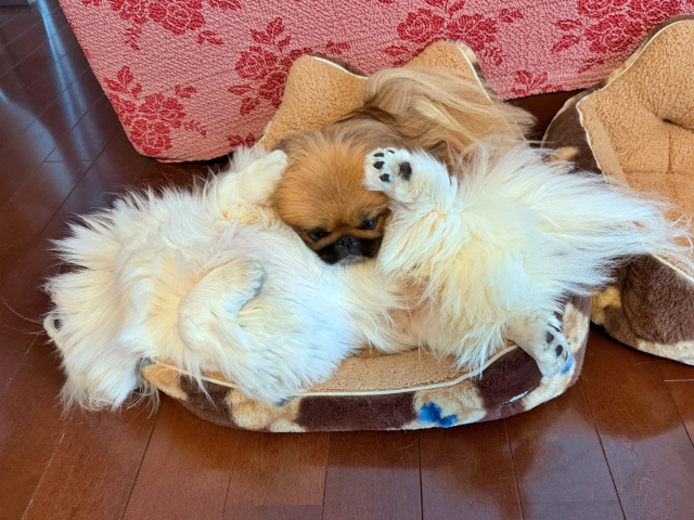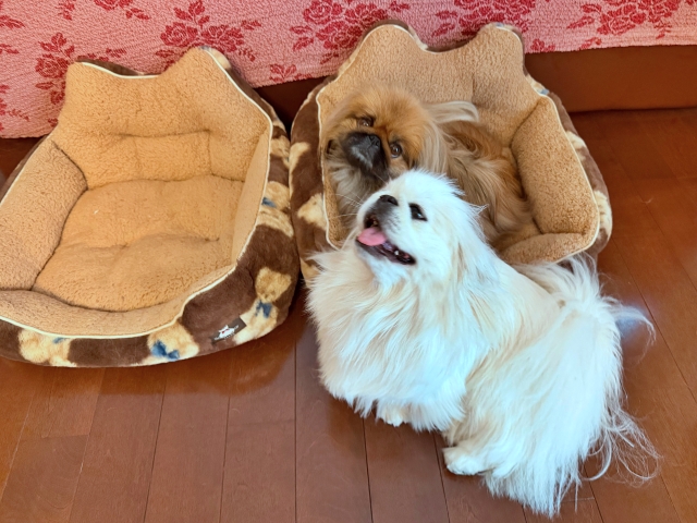 ベッドに入りたそうにしたいたから、同じベッドを隣に置いてあげたけど、吠えている理由はそうじゃなくて・・・