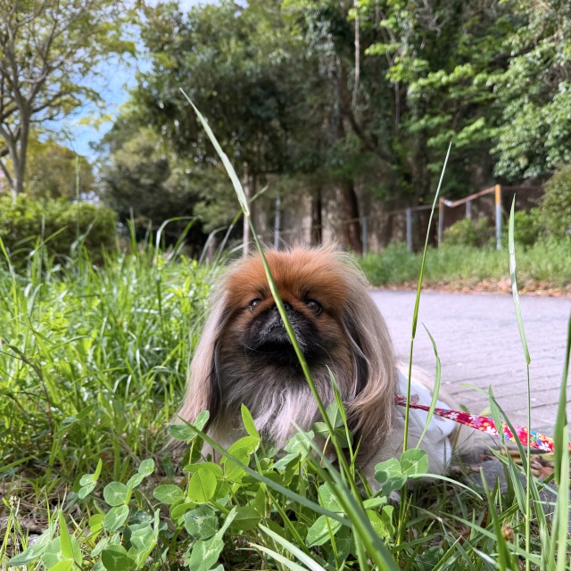 本犬は草むらが楽しそうだけど、飼い主は、何かアレルゲンを着けて来そうなので入ってほしくないのですがね💦