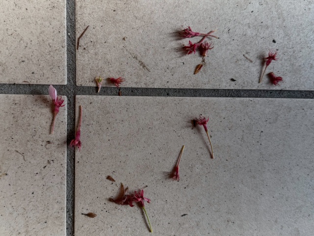 金曜日に雨がたくさん降ったので、桜のヘタもたくさん地面に落ちました。。。