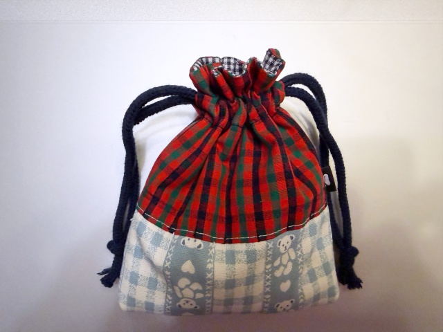 自宅にあったハギレに、パッチワーク用のキルト芯を入れて自分でキルティングを作って小さな袋を作りました。