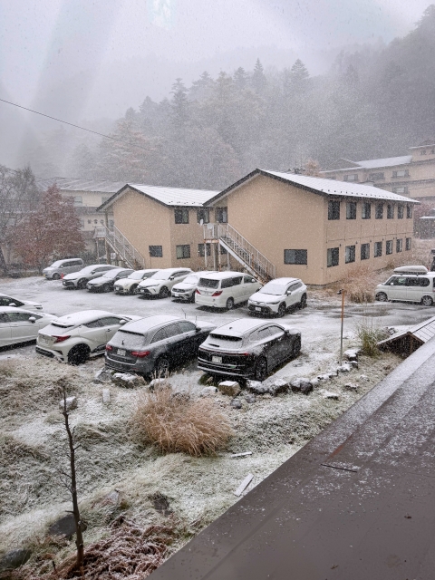 二日目の朝7時頃から、ちらほら雪が降り出しあっという間に真っ白になった💦