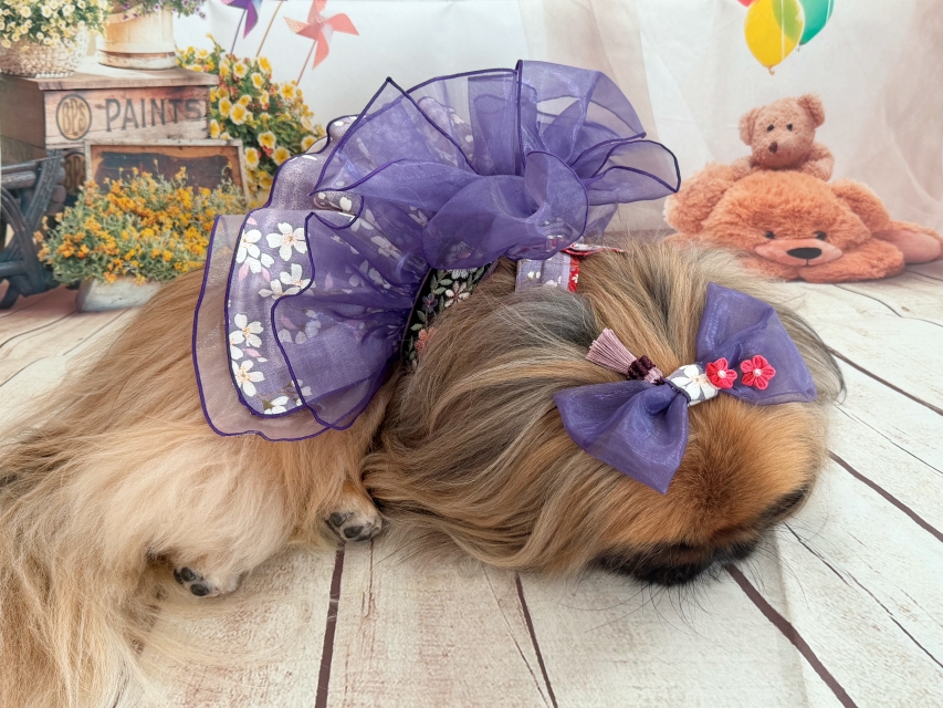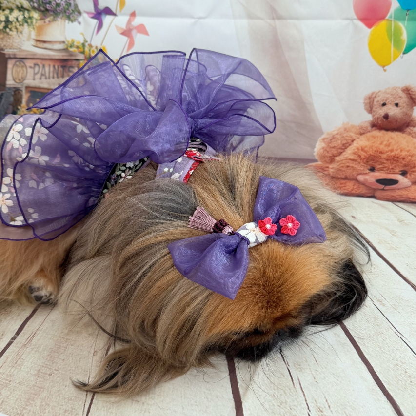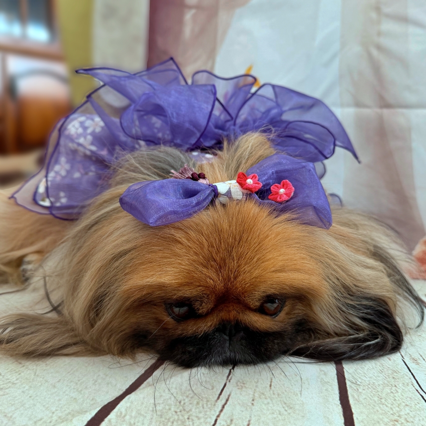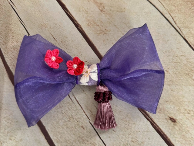 帯はインド刺繍リボンの黒を使ったけれど、髪飾りのリボンを作るには寸法が足りなくて残念!