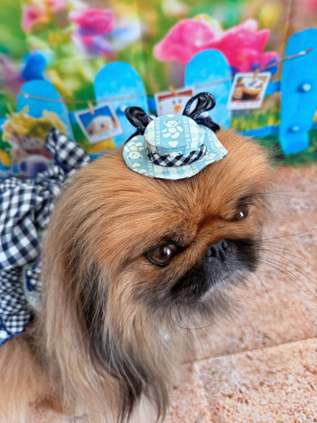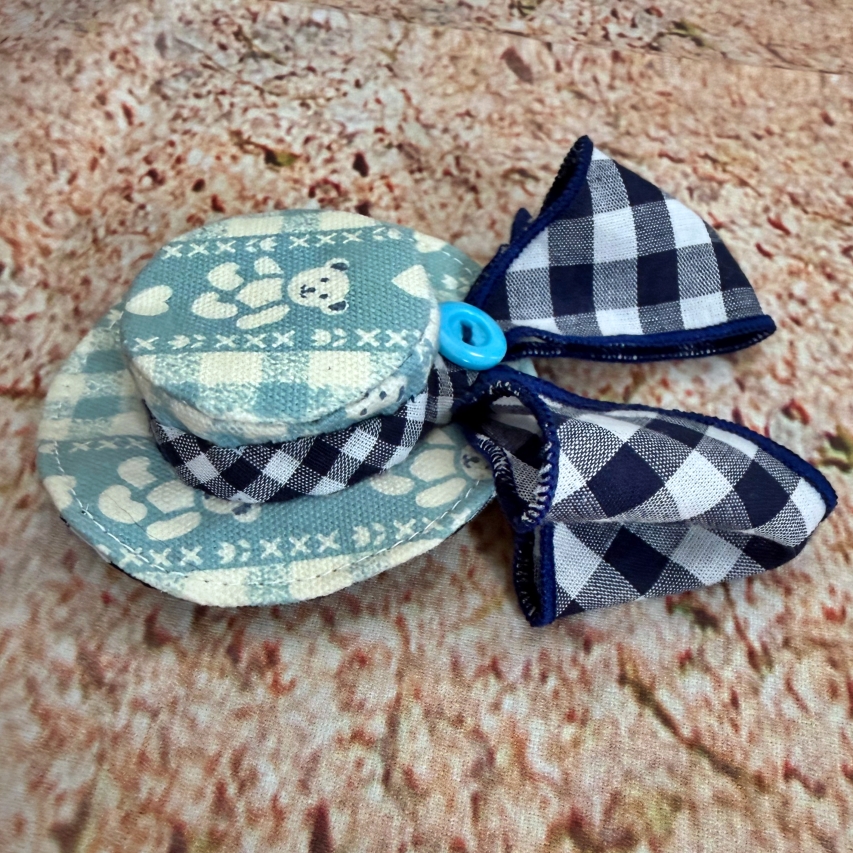 いつも髪飾りはリボンが多いので、いつもと違って小さな帽子をイメージ。