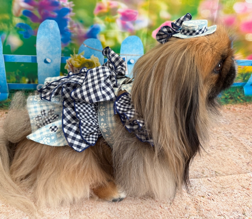 上に合わせた二重のギンガム生地は、斜めにカーブを入れてみました。