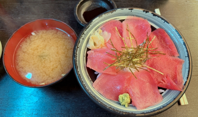 マグロ丼を頼んだけれど、お腹がいっぱいで半分も食べられませんでした😅